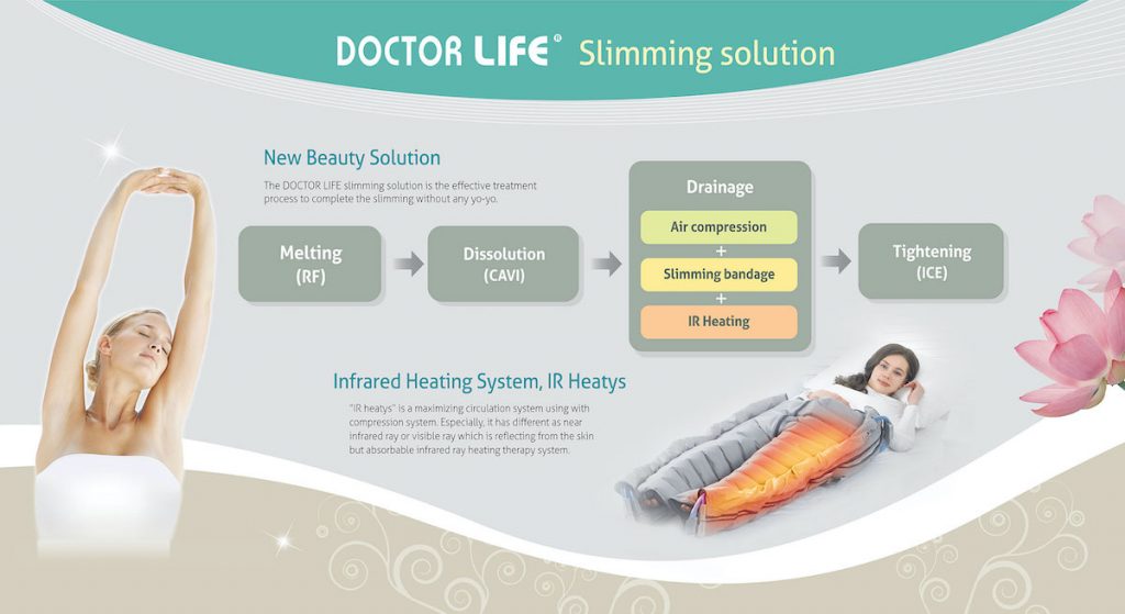 Kromě lymfodrenážního přístroje, provozujeme také přístroj na hubnutí a odbourávání celulitidy. Prohřívá 50 minut tělo intenzívním hloubkovým infrateplem 44-45°C. Zahřátím přinutí rozproudit krevní oběh a jeho metabolismus a tělo začíná spalovat. Na tomto principu pracuje náš další přístroj BEAUTYTHER PROFI. Více na těchto stránkách… TERMOHUBNUTÍ…
